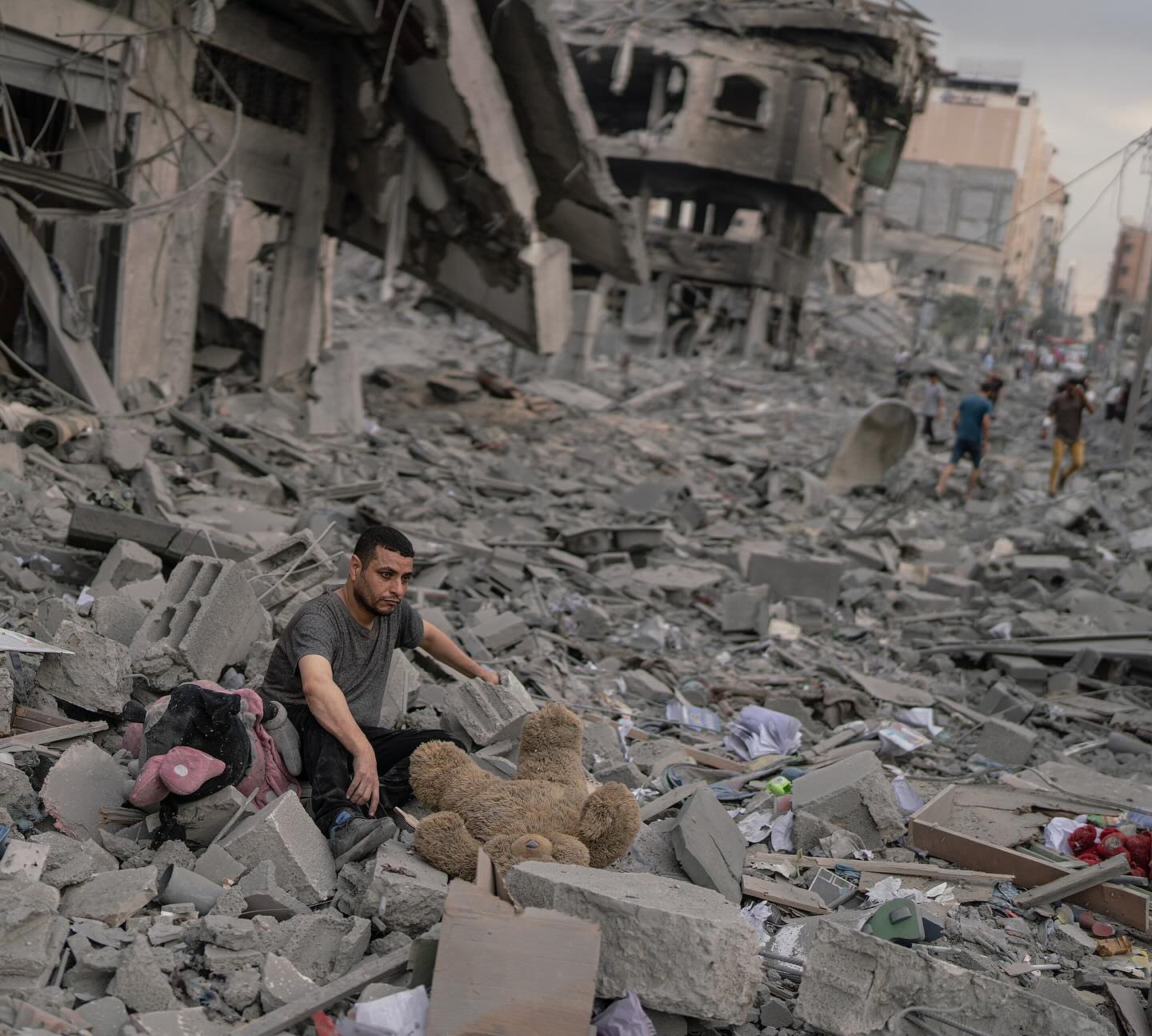 Ο φωτογράφος Μοτάζ Αζαΐζα από την Γάζα φωτογράφισε την απόγνωση. Έναν άνθρωπο που κρατά μια κούκλα και έναν αρκούδο, τα μόνα που του έμειναν από την οικογένειά του.