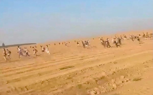 Νεαροί τρέχουν να ξεφύγουν από τα πυρά της Χαμάς.