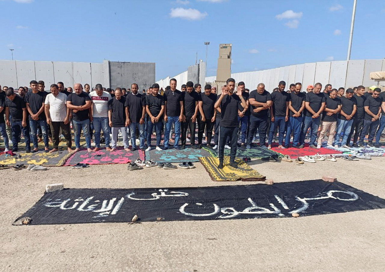 Αιγύπτιοι προσεύχονται μπροστά στο πέρασμα της Ράφα για τους παλαιστίνιους που σκοτώθηκαν μετά το χτύπημα στο νοσοκομείο της Γάζας