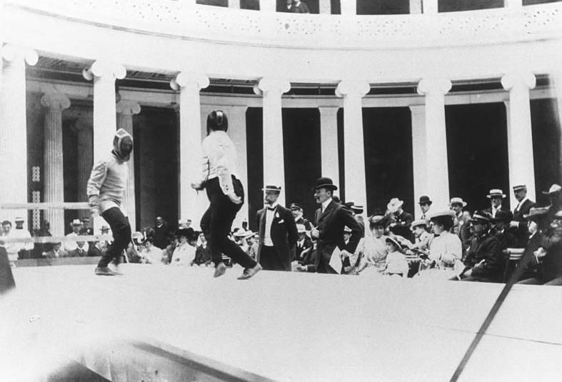 Στους πρώτους σύγχρονους Ολυμπιακούς Αγώνες του 1896 φιλοξενούνται στην κυκλική αίθουσά του τα αγωνίσματα της ξιφασκίας, ενώ στους Β΄ Διεθνείς Ολυμπιακούς Αγώνες (1906) η έλλειψη υποδομών και εγκαταστάσεων οδήγησε στη χρήση του ως «Ολυμπιακού Χωριού».