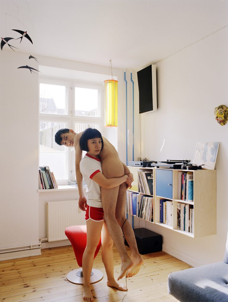 Το σκηνικό, εν τω μεταξύ, καθορίζει την αισθητική των φωτογραφιών. Η Liao ψάχνει για τοποθεσίες που διαπνέονται από την αίσθηση του ότι «οι ιστορίες είναι δυνατόν να διαδραματιστούν σε αυτό το μέρος». Παρατηρούμε συχνά το ζευγάρι σε εσωτερικούς χώρους σπιτιών, είτε πρόκειται για ένα απογυμνωμένο, μονότονο σπίτι είτε για ένα κομψό νεοϋορκέζικο λοφτ. Αλλά η συλλογή μας ταξιδεύει και σε πιο αναπάντεχα μέρη: ένα αγροτικό ξενοδοχείο στην Ιαπωνία, ένα ήσυχο δάσος στο Γούντστοκ της Νέας Υόρκης.