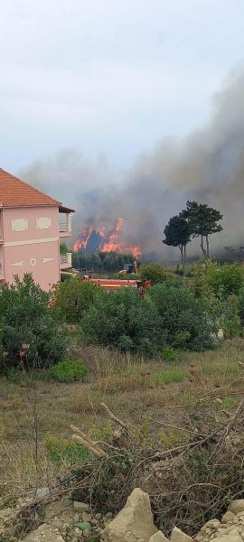 Η πυρκαγιά απείλησε σπίτια, καθώς οι φλόγες που έκαιγαν αγροτοδασική έκταση, αλλά και ελαιώνα, έφτασαν μέχρι τις αυλές σε οικείες στα προάστια του χωριού. Μάλιστα, οι φλόγες σταμάτησαν όταν έφτασαν στη θάλασσα.