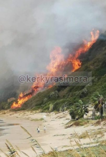 Συγκεκριμένα, ξεκίνηση από αγροτοδασική έκταση στην περιοχή, Άγιος Στέφανος Κέρκυρας στο βόρειο τμήμα του νησιού. Η εικόνα είναι εμφανώς βελτιωμένη, με τους ισχυρούς ανέμους να έχουν κοπάσει.
