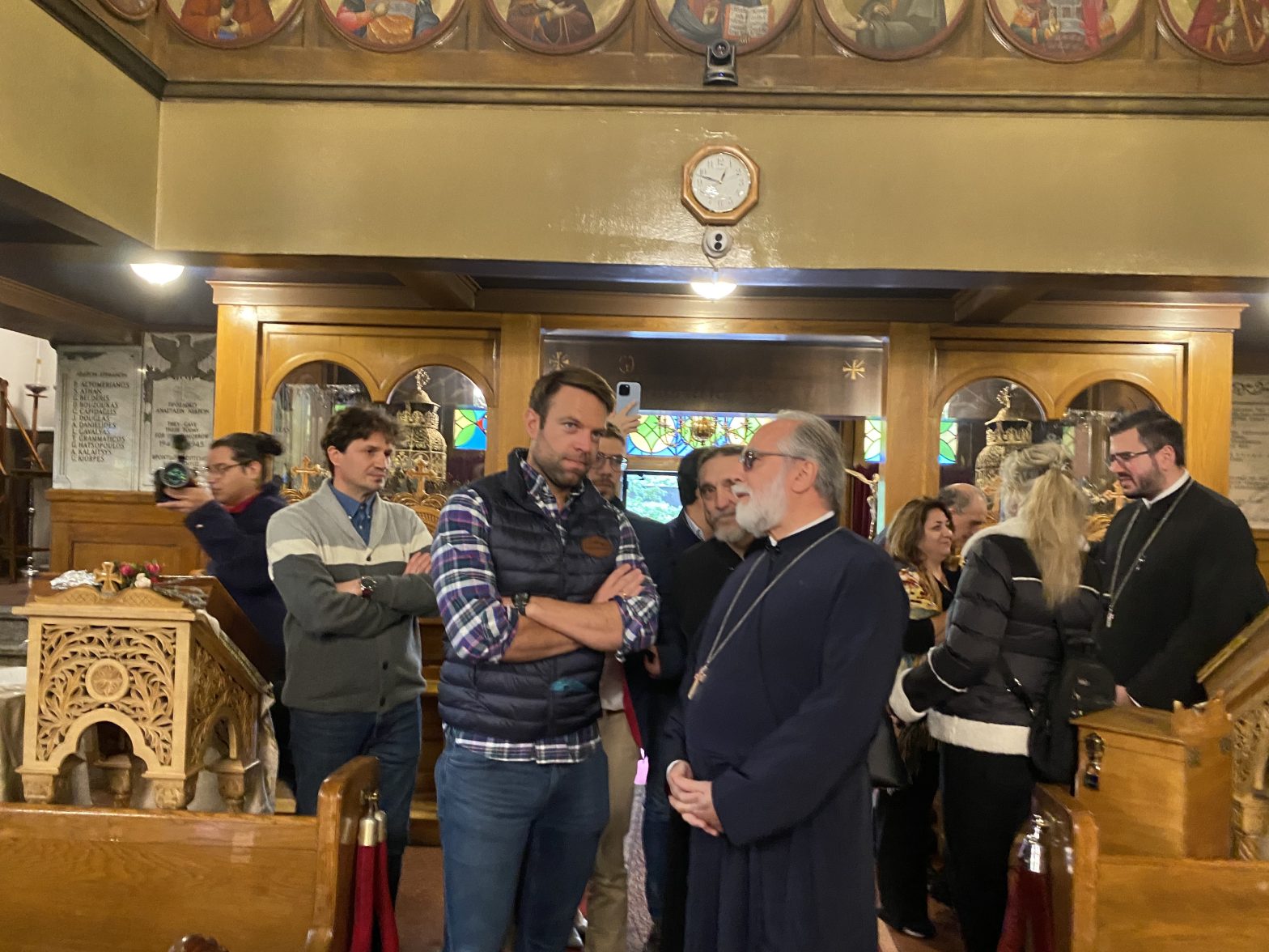 Στον Στέφανο Κασσελάκη, ο οποίος εκτός από τον σύζυγό του, συνοδευόταν και από μέλη του ΣΥΡΙΖΑ Νέας Υόρκης, επεφύλαξαν θερμή υποδοχή μεταξύ άλλων ο πρόεδρος της Κοινότητας, Νίκος Παπαϊωάνου, ο ιερατικώς προϊστάμενος, π. Ανάργυρος Σταυρόπουλος, ο προϊστάμενος του σχολείου, π. Γρηγόριος Σταμκόπουλος.