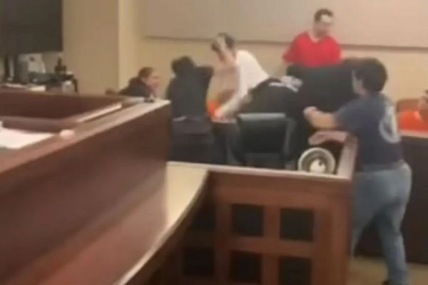 Η συμπλοκή συνέβη μπροστά σε ένα πάγκο που καθόντουσαν και άλλοι κρατούμενοι, όπως και δύο δικαστικοί επιμελητές που έσπευσαν να χωρίσουν τις αντιμαχόμενες πλευρές.