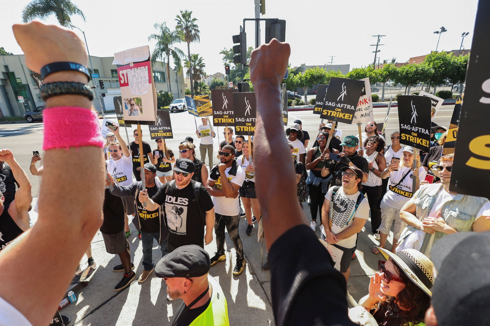 Έξω από τα γραφεία των στούντιο στην Καλιφόρνια και τη Νέα Υόρκη και σε άλλα σε όλη τη χώρα, οι ηθοποιοί έκαναν συγκεντρώσεις διαμαρτυρίας και κάλεσαν τις εταιρείες ψυχαγωγίας να μοιραστούν μεγαλύτερο μερίδιο από τις επιτυχίες του streaming και να τους παράσχουν προστασία από τη χρήση της τεχνητής νοημοσύνης.