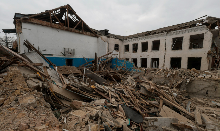Οι αρχές στη νότια ουκρανική περιφέρεια της Χερσώνας διέταξαν την υποχρεωτική εσπευσμένη απομάκρυνση οικογενειών με παιδιά από τα σπίτια τους, επικαλούμενες τους ρωσικούς βομβαρδισμούς σε κατοικημένες περιοχές (στη φωτογραφία αρχείου του Reuters/Valentyn Ogirenko, επάνω, κατεστραμμένο σχολείο από ρωσικούς βομβαρδισμούς σε χωριό της Χερσώνας).