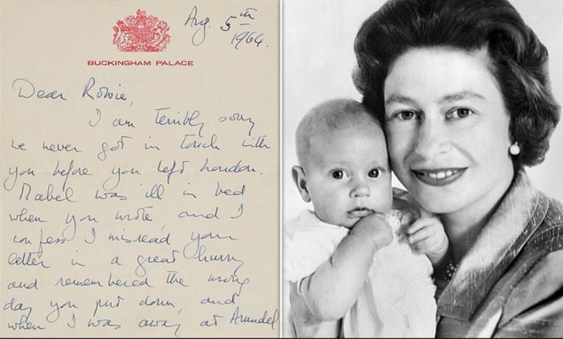 Το 2σέλιδο γράμμα απευθύνεται στη μαία και φίλη της αείμνηστης μονάρχη, Αδελφή Έλεν «Ρόουιο» Ρόου και έχει ημερομηνία 5 Αυγούστου του 1964, μόλις πέντε μήνες μετά την υποδοχή του μικρότερου γιου της στον κόσμο.
