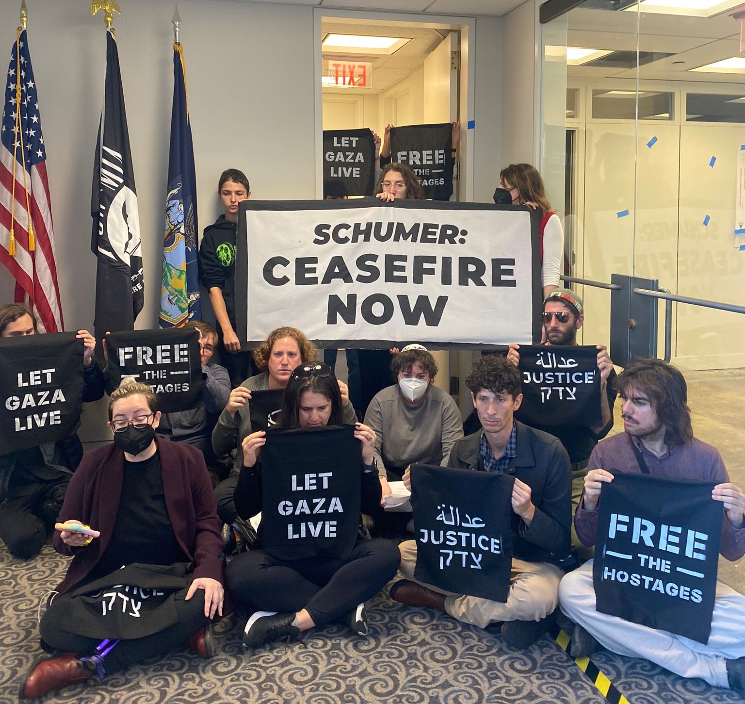 CONFIRMED: American Jews were arrested for sitting-in @SenSchumer‘s office, begging him to put an end to bloodshed and support #CeasefireNOW.
