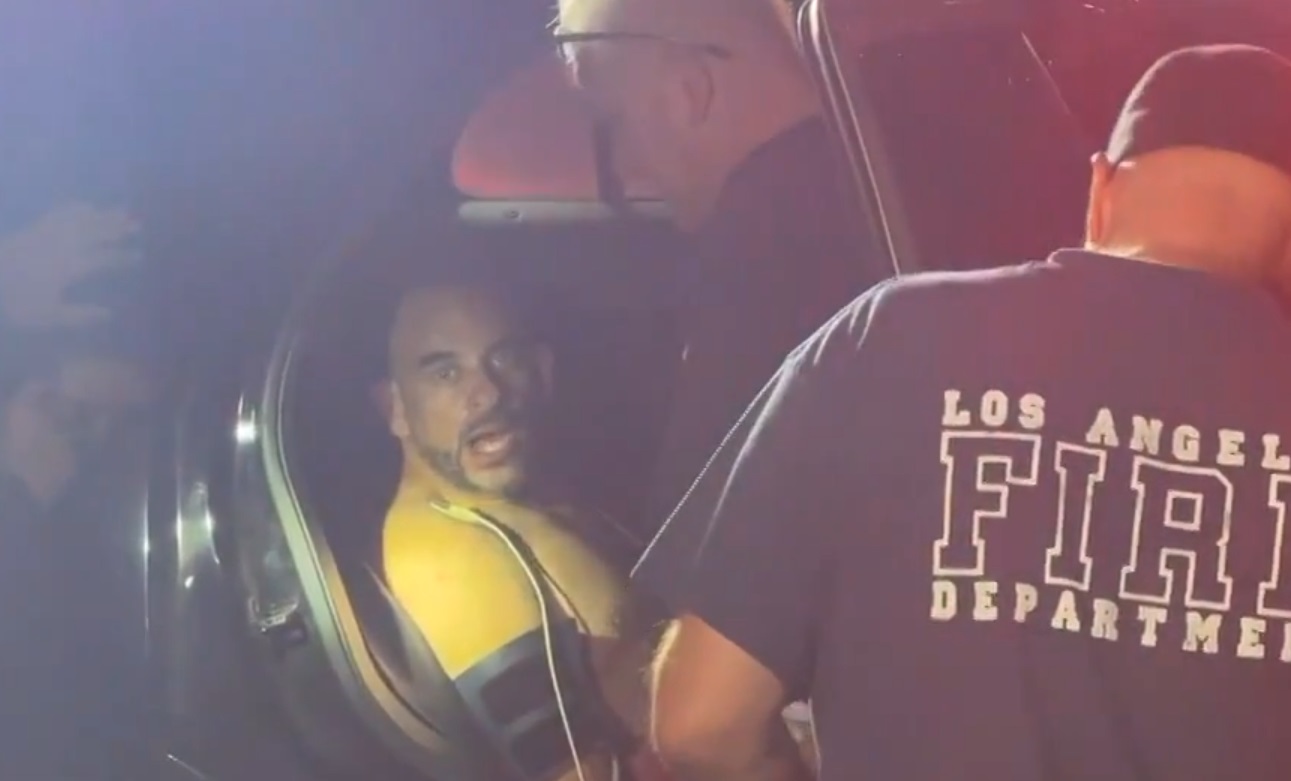 Ο άνδρας συνελήφθη ημίγυμνος από την αστυνομία του Λος Άντζελες στις 05:30 της Τετάρτης (τοπική ώρα). Είχε στην κατοχή του ένα κουζινομαχαίρο.