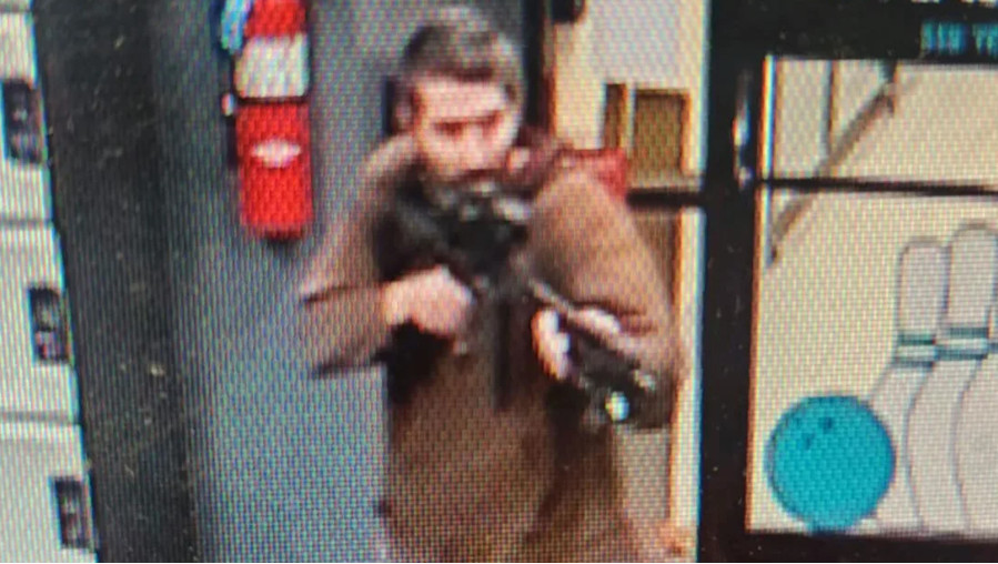 Ανατριχιαστικές εικόνες από κάμερες κλειστού κυκλώματος δείχνουν τον δράστη να μπαίνει στην αίθουσα μπόουλινγκ Sparetime Recreation και να σημαδεύει με την καραμπίνα του, ενώ πλάνα δείχνουν τρομοκρατημένους ανθρώπους να τρέχουν να σωθούν.