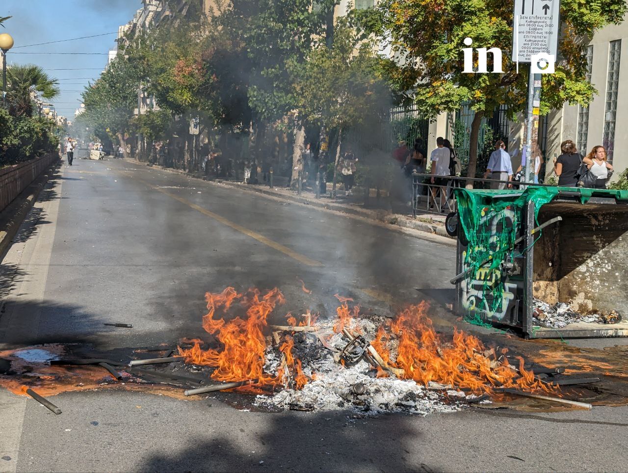 Σύμφωνα με την Αστυνομία λίγο μετά τις 11.30 μια ομάδα περίπου 30 ατόμων βγήκαν και άναψαν φωτιά σε κάδους σκουπιδιών. Στο σημείο είχαν σπεύσει αστυνομικές δυνάμεις.