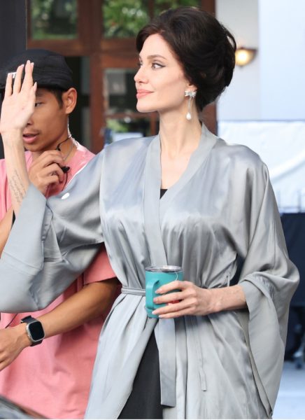 Η Τζολί, φαίνεται κομψή, φορώντας ένα γκρι κιμονό, πανέμορφα κρεμαστά σκουλαρίκια, με το μαλλί της να είναι πιασμένο σε έναν επιβλητικό κότσο, θυμίζοντας σε μεγάλο βαθμό την Κάλλας. Ενώ έμπαινε στην λιμουζίνα της ώστε να μετακινηθούνε προς άλλη τοποθεσία γυρισμάτων, η ηθοποιός έδειχνε πολύ φιλική και δεν παρέλειψε να χαιρετήσει τους φαν της.