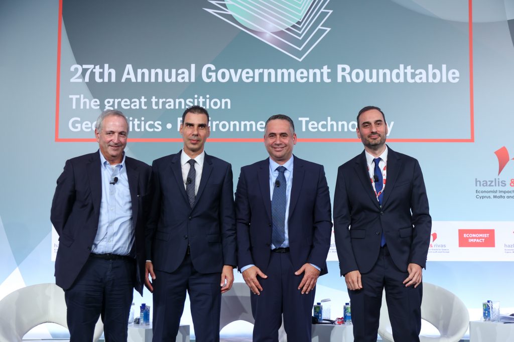 Από αριστερά: Ο executive και diplomatic editor του Economist Ντάνιελ Φράνκλιν, ο υφυπουργός Υγείας Μάριος Θεμιστοκλέους, ο Διευθύνων Σύμβουλος της Roche Hellas Eζάτ Αζέμ και ο επίκουρος Καθηγητής Οικονομικών της Υγείας στο Πανεπιστήμιο Δυτικής Αττικής Κώστας Αθανασάκης