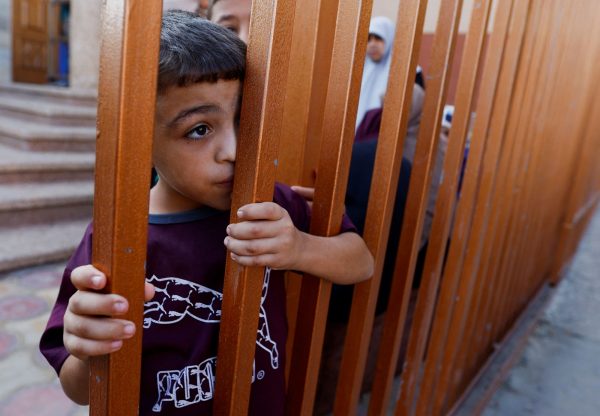 Ένα παιδί κοιτάζει πίσω από μια πύλη καθώς πενθούντες παρευρίσκονται σε μια κηδεία Παλαιστινίων που σκοτώθηκαν στα ισραηλινά χτυπήματα, στο Khan Younis στη νότια Λωρίδα της Γάζας, 31 Οκτωβρίου 2023 (REUTERS)