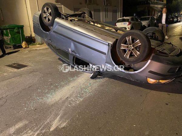Με την πρόσκρουση το όχημά της ανατράπηκε καταλήγοντας ανάποδα στη μέση του οδοστρώματος.