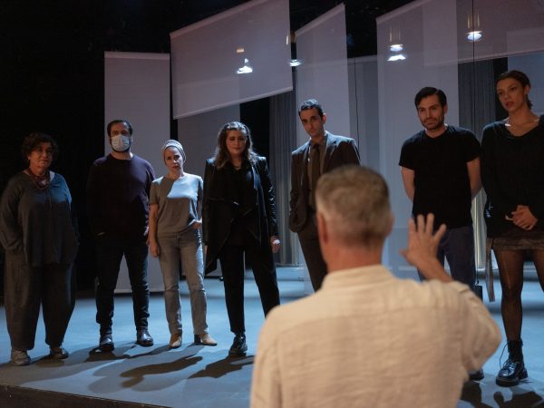 Τελευταίες σκηνοθετικές οδηγίες από τον Βαγγέλη Θεοδωρόπουλο. Πώς προσεγγίζουν τους ρόλους τους η Μαρία Κίτσου και ο Ιωσήφ Ιωσηφίδης. To in στην πρόβα, στο θέατρο Πόρτα.