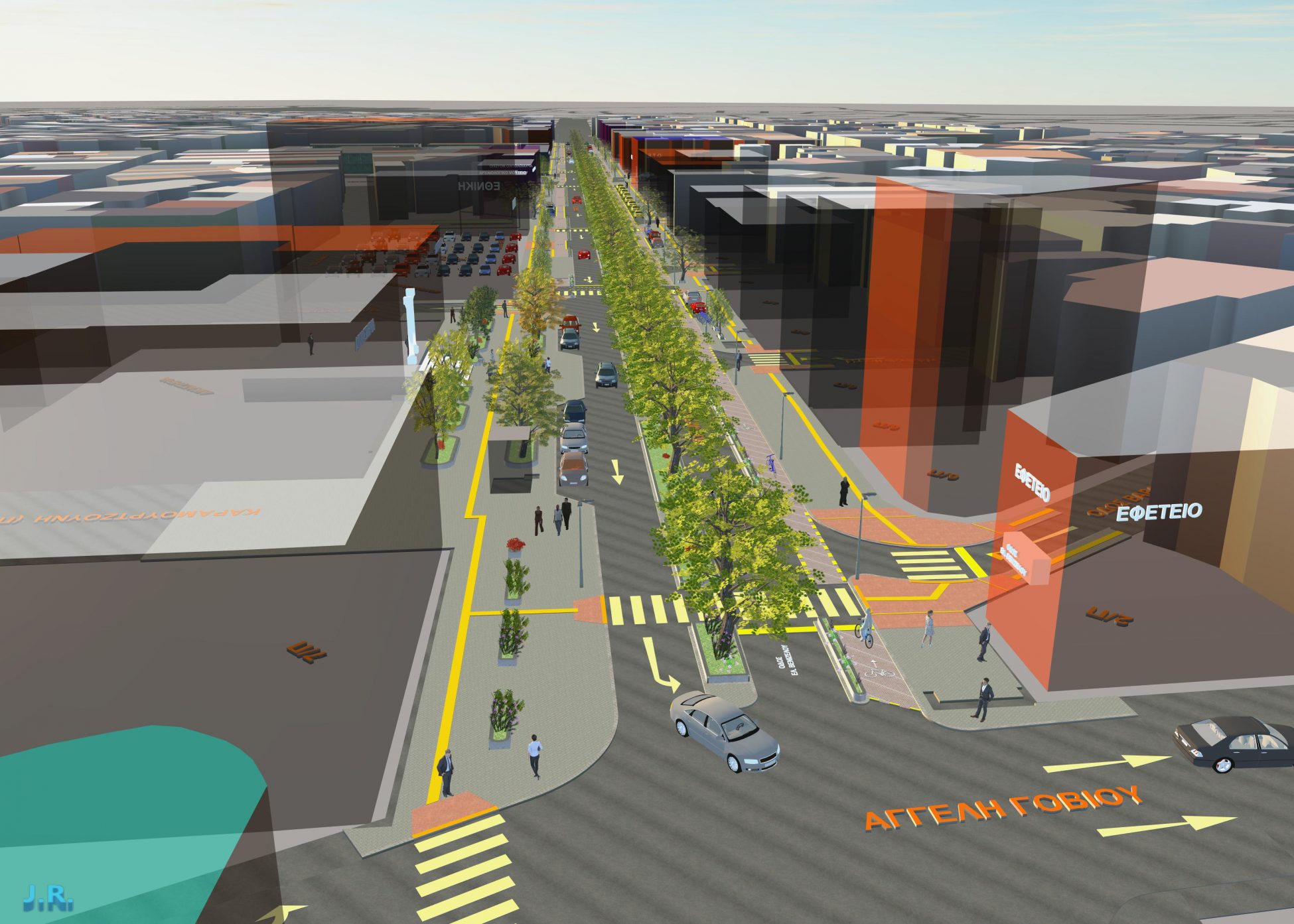 - Αποκλειστική λωρίδα ποδηλάτου και στάσεις ποδηλάτου, στις δύο πλευρές της Λεωφόρου