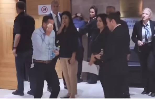 Ένα βίντεο που αναρτήθηκε από έναν δημοσιογράφο του I24 δείχνει κάποιους βουλευτές εμφανώς αναστατωμένους να ξεσπούν σε κλάματα στον διάδρομο της Κνεσέτ έξω από την αίθουσα προβολής.
