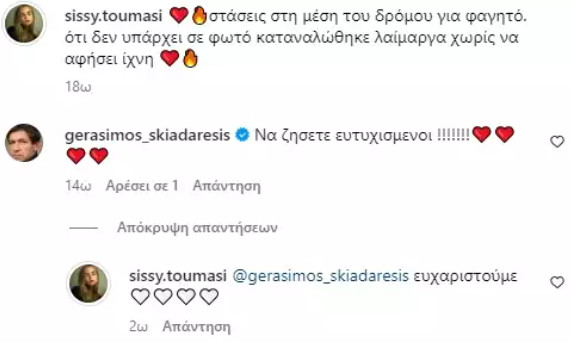 Πιο συγκεκριμένα, όταν ο Γεράσιμος Σκιαδαρέσης της ευχήθηκε για τον γάμο εκείνη του απάντησε «Ευχαριστούμε», επιβεβαιώνοντας έτσι ότι παντρεύτηκε με τον Αργύρη Πανταζάρα.