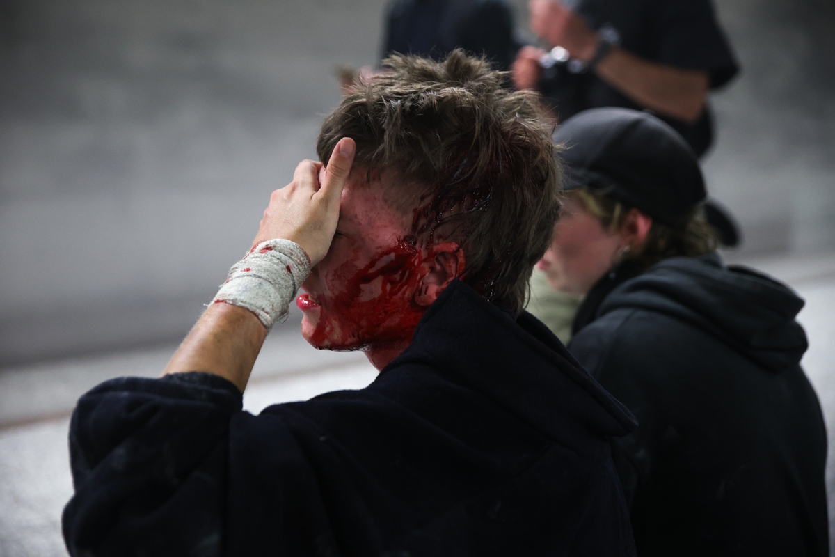 Μικρά παιδιά με τους γονείς τους, νέοι και ηλικιωμένοι ξέρουν πως δεν μπορούν να κάνουν το παραμικρό. Αν σηκωθούν μπορεί να τραυματιστούν. Αν αρχίσουν να τρέχουν υπάρχει κίνδυνος να στοχοποιηθούν. Αν μείνουν στη θέση τους, ίσως γλιτώσουν. Αν και τα όσα βλέπουν ορισμένοι μετατρέπουν κατά διαστήματα την αγωνία τους σε πανικό.