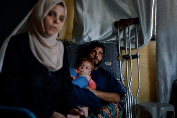 Στη φωτογραφία από το νοσοκομείο Νάσερ στην μαρτυρική Λωρίδα της Γάζας, η γυναίκα κρατά στην αγκαλιά της ένα παιδί, το οποίο ισορροπεί στο γόνατό της. Πρόκειται για μια εικόνα τόσο οικεία, τόσο συνηθισμένη που όποιος την δει είτε την θυμάται ως παιδί, είτε θυμάται να κρατά έτσι το παιδί του. Ζωντανό.
