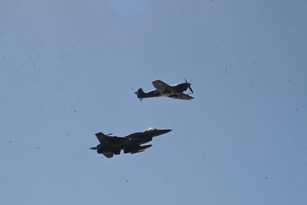 Επιβλητικά μαχητικά αεροσκάφη «έσκισαν» τον ουρανό πάνω από τον Φλοίσβο κάνοντας ιδιαίτερα αισθητή την παρουσία τους.
