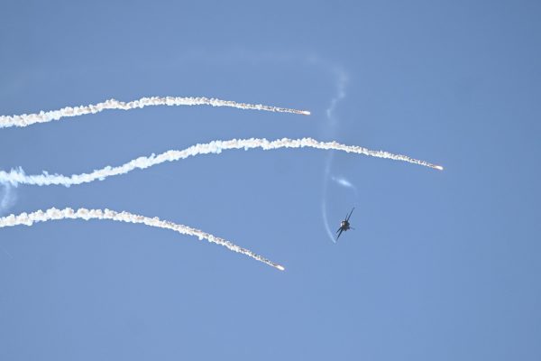 Όπως φαίνεται μάλιστα και στις εικόνες, τα πολεμικά ελικόπτερα κατέβηκαν αρκετά χψαμηλά, σε σημείο που έφτασαν να πετούν λίγο πιο ψηλά από τα κεφάλια των πολιτών, σηκώνοντας κύμα και προσφέροντας φαντασμαγορικό θέαμα στο κοινό.