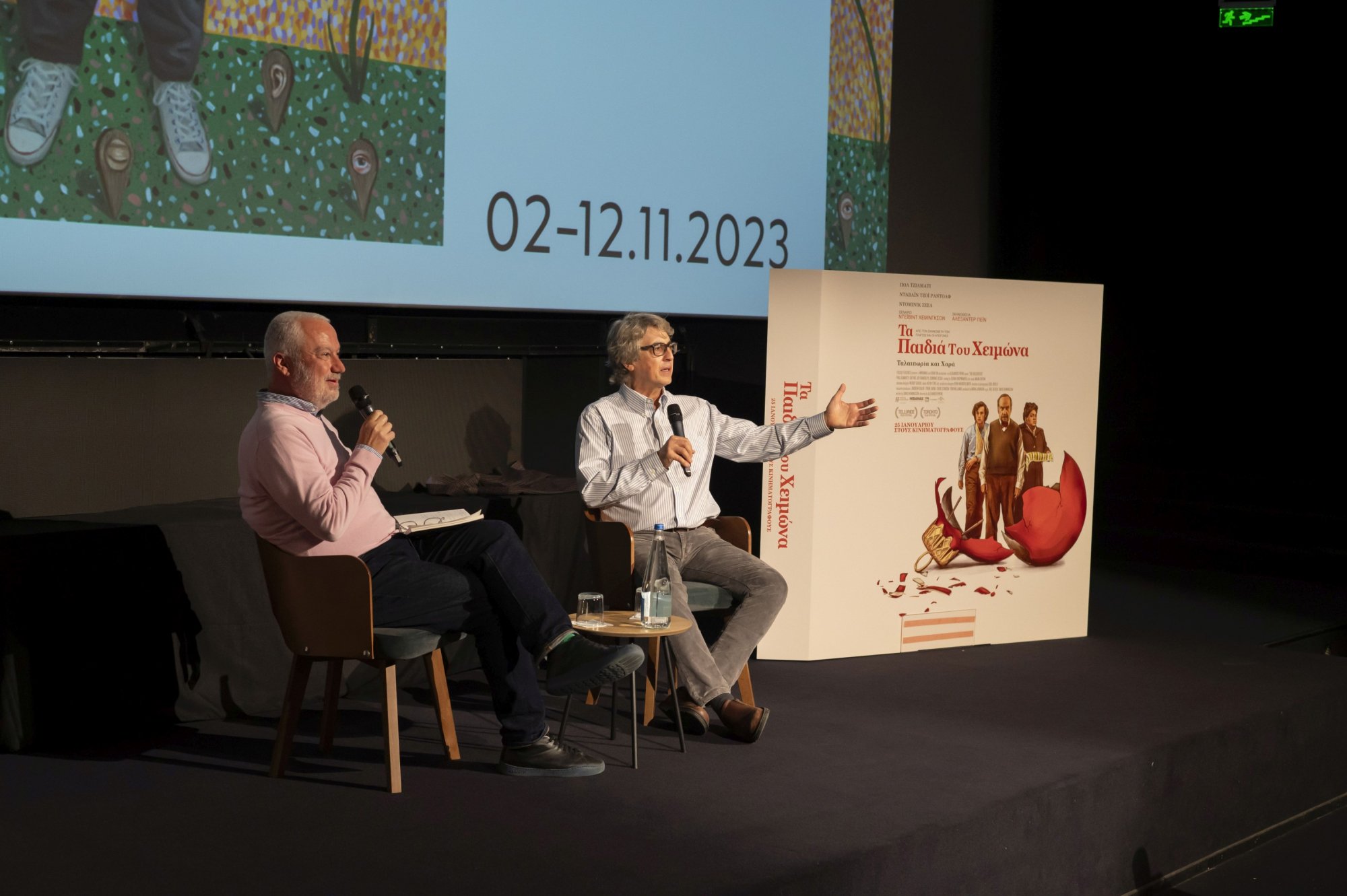 Ο σπουδαίος καλλιτέχνης βρέθηκε στην αίθουσα Τζον Κασσαβέτης, λίγες ώρες πριν την πρεμιέρα της νέας του ταινίας «Τα παιδιά του χειμώνα» στο Ολύμπιον. Πρωταγωνιστές οι Πολ Τζιαμάτι, ΝταΒάιν Τζόι Ράντολφ και Ντόμινικ Σέσα, σε σενάριο Ντέιβιντ Χέμινγκσον. Η ταινία διαδραματίζεται σε ένα διακεκριμένο αμερικανικό κολέγιο, στη διάρκεια των χριστουγεννιάτικων διακοπών, τη δεκαετία του 1970. Πρόκειται για ένα ταξίδι αυτογνωσίας τριών ετερόκλητων χαρακτήρων σε μία κρίσιμη καμπή στη ζωή τους, διανθισμένο τρυφερότητα και χιούμορ.