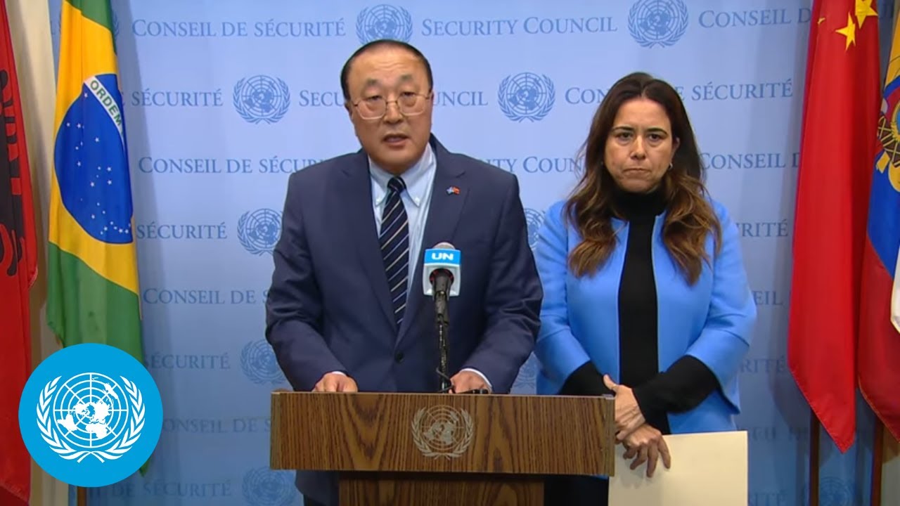 Οι εκπρόσωποι της Κίνας και των Ηνωμένων Αραβικών Εμιράτων στα Ηνωμένα Εθνη (φωτογραφία, επάνω, από βίντεο στο X) προέβησαν σε κοινή δήλωση μετά τη συνεδρίαση του Συμβουλίου Ασφαλείας του ΟΗΕ, το οποίο απέτυχε για άλλη μια φορά να συμφωνήσει σ’ ένα ψήφισμα για τον πόλεμο στη Λωρίδα της Γάζας.
