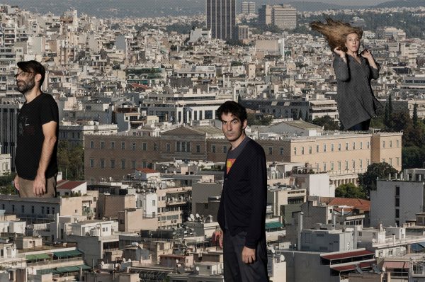 Οι ηθοποιοί της παράστασης Γιάννης Θ. Διαμαντής (κέντρο), Νίκος Ιωακείμ και Ζωή Ξανθοπούλου.