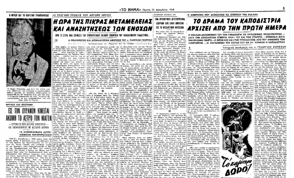 «ΤΟ ΒΗΜΑ», 25.12.1958, Ιστορικό Αρχείο «ΤΟ ΒΗΜΑ» & «ΤΑ ΝΕΑ»