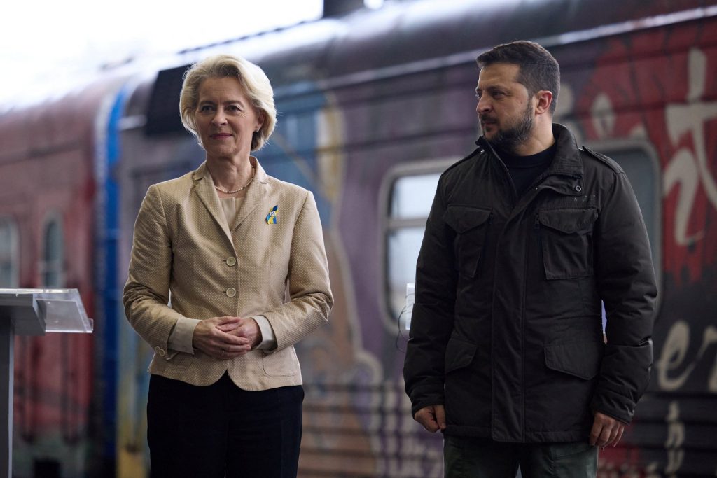 Ο Ουκρανός πρόεδρος Ζελένσκι με την πρόεδρο της Ευρωπαϊκής Επιτροπής, Ούρσουλα φον ντερ Λάιεν, κατά την επίσκεψη της τελευταίας στο Κίεβο, την περασμένη εβδομάδα