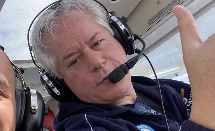 Πρόκειται για τον Θεόδωρο Πάντο πρόεδρο της Αερολέσχης Δυτικής Αθήνας ο οποίος ξεκίνησε την πτήση του από το αεροδρόμιο της Κωπαΐδας με προορισμό αυτό στο Μάλεμε.