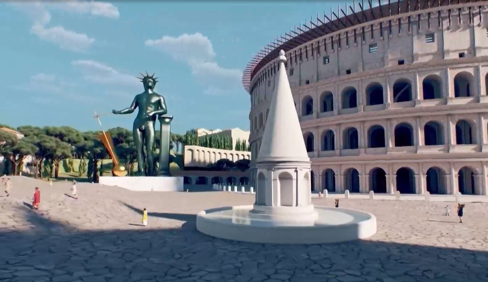 Μια εικονική περιήγηση που κυκλοφόρησε από τους δημιουργούς του έργου μεταφέρει τους θεατές πάνω από το κέντρο της αρχαίας πόλης και τους λόφους του Καπιτωλίου και του Παλατινού Λόφου.