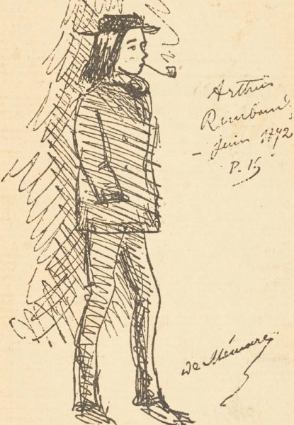 Από τότε ο Ρεμπώ εγκαταλείπει το σχολείον, αρχίζει να παραμελή τον εαυτόν του, αφήνει τα μαλλιά του μακριά, καπνίζει την πίπα του από την ανάποδη, υβρίζει τους ιερείς. Με το ξέσπασμα της Κομμούνας μεταβαίνει εις το Παρίσι και αναλαμβάνει ενεργόν δράσιν. Εκείνην την εποχήν περίπου γνωρίζεται με τον Βερλαίν —τον μεγαλύτερον ποιητήν κατ’ αυτόν ύστερα από τον Μπωντελαίρ— και του διαβάζει το «Μεθυσμένο καράβι» του, το οποίον ενεπνεύσθη χωρίς να έχη δη ποτέ θάλασσαν, κυττάζοντας απλώς την εικονογράφησιν του «Ναυτίλου» του Ιουλίου Βερν εις την προθήκην ενός βιβλιοπωλείου. Ο Βερλαίν από την συγκίνησιν μένει άφωνος. Όπως λέγει ο ίδιος, «διά πρώτην φοράν τού απεκαλύφθη το θαύμα», και ο «καταραμένος ποιητής» είναι μόλις 17 ετών.