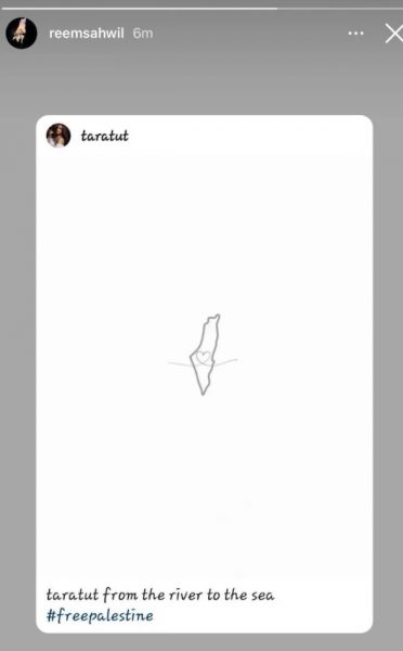 Η Σάγουιλ μοιράστηκε στο προφίλ της στο Instagram το περίγραμμα του Ισραήλ και των κατεχόμενων παλαιστινιακών εδαφών. Από κάτω αναγράφεται το σύνθημα: «από το ποτάμι στη θάλασσα #freepalestine» το οποίο έχει στοχοποιηθεί ως αντισημιτικό.