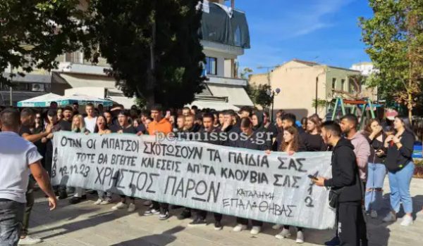 Συγκέντρωση στην πλατεία Αγίων Θεοδώρων της Θήβας πραγματοποίησαν σήμερα δεκάδες συμμαθητές, φίλοι και συγγενείς του 17χρονου Χ.Μ. που έπεσε νεκρός στο Λεοντάρι Βοιωτίας.