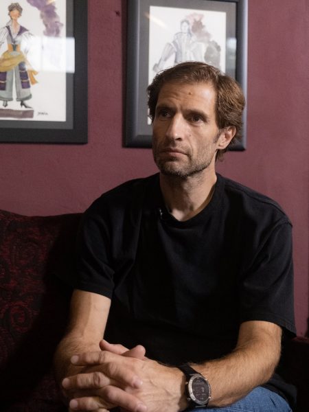 «Με συγκινούν οι ανατροπές, το απρόσμενο, οι εκπλήξεις. Και αυτό που με συγκινεί πάρα πολύ, και πλέον όσο περνάνε τα χρόνια το αντιλαμβάνομαι και το αποδέχομαι είναι ότι ο ρόλος των καλλιτεχνών και συγκεκριμένα μιας θεατρικής, μιας κινηματογραφικής, μιας τηλεοπτικής διαδικασίας, είναι να δικαιολογήσεις κάτι παράλογο. Αυτή είναι η μαγεία της τέχνης» λέει ο Μάξιμος Μουμούρης, ο ηθοποιός που υποδύεται τον Κωνσταντίνο Λαμπρόπουλο, στη Γη της Ελιάς, ένα συννεφιασμένο απόγευμα, λίγο πριν ανεβάσει τον «Πλατόνοφ» του Τσέχοφ στο θέατρο Τόπος Αλλού στην Κυψέλη.