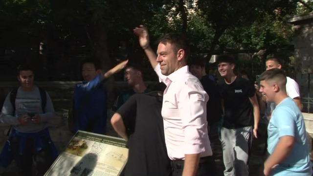 Ιδιαίτερα ενθουσιώδης ήταν η υποδοχή του από τους νέους, οι οποίοι έσπευσαν να τον χαιρετήσουν και να τραβήξουν μερικές selfies μαζί του.