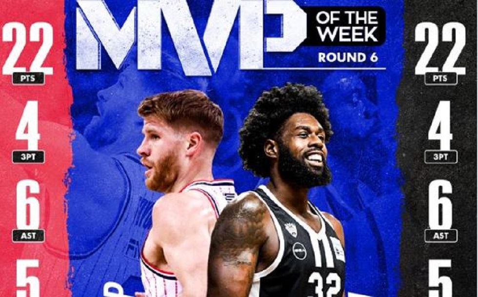 Στα «δύο» μοιράστηκε το βραβείο του πολυτιμότερου παίκτη για την έκτη αγωνιστική της Basket League.
