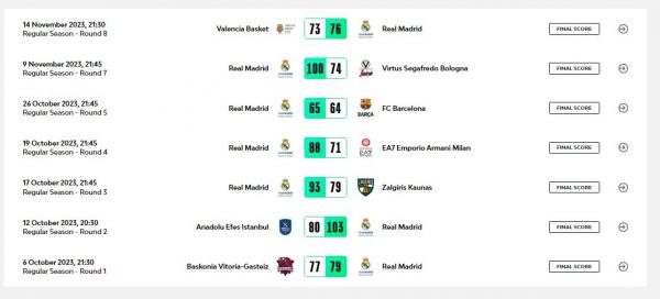 Παρόλα αυτά η Ρεάλ δεν φοβάται κανέναν, ειδικά με αυτό το υπερταλαντούχο και υπέρλαμπρο ρόστερ που έχει δημιουργήσει, ίσα ίσα εκείνη σκορπάει… τρόμο σε όλη την Ευρώπη, όπως φαίνεται και από τα αποτελέσματα, αλλά και από τον τρόπο που κερδίζει. Το έχει κάνει με κάθε πιθανό τρόπο, ενώ το μόνο παιχνίδι της που έχει κριθεί από όλα στο τελευταίο καλάθι και στον πόντο είναι αυτό με την Μπαρτσελόνα στη Euroleague (65-64).