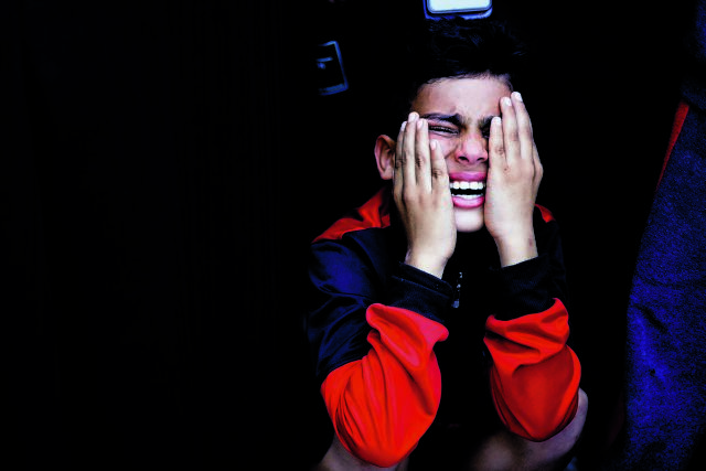 Ενας μικρός Παλαιστίνιος ξεσπά σε κλάματα ακούγοντας για τον θάνατο του πατέρα του σε ισραηλινό βομβαρδισμό στο Χαν Γιουνίς της Λωρίδας της Γάζας