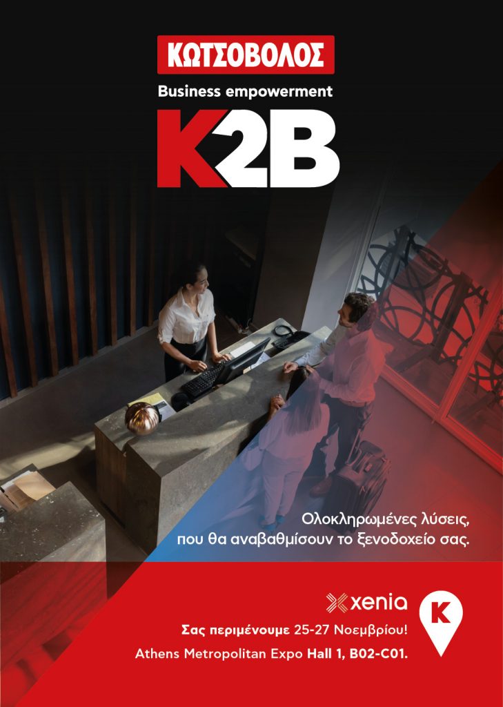 Η έκθεση XENIA θα πραγματοποιηθεί από τις 25 έως και τις 27 Νοεμβρίου στο Metropolitan Expo, ενώ μπορούμε να επισκεφθούμε το σύγχρονο περίπτερο της ομάδας Κ2Β της Κωτσόβολος στη θέση Hall 01 – B02-C01. Εκεί θα έχουμε τη δυνατότητα να γνωρίσουμε αναλυτικά τις υπηρεσίες και τα προϊόντα που μας προσφέρει για την ενδυνάμωση του ξενοδοχείου μας, να ενημερωθούμε σχετικά με τα προγράμματα επιδότησης του κλάδου και με τη βοήθεια της εξειδικευμένης ομάδας Κ2Β να ανακαλύψουμε τις λύσεις που ταιριάζουν στην επιχείρησή μας και απαντούν στις ιδιαίτερες ανάγκες της.