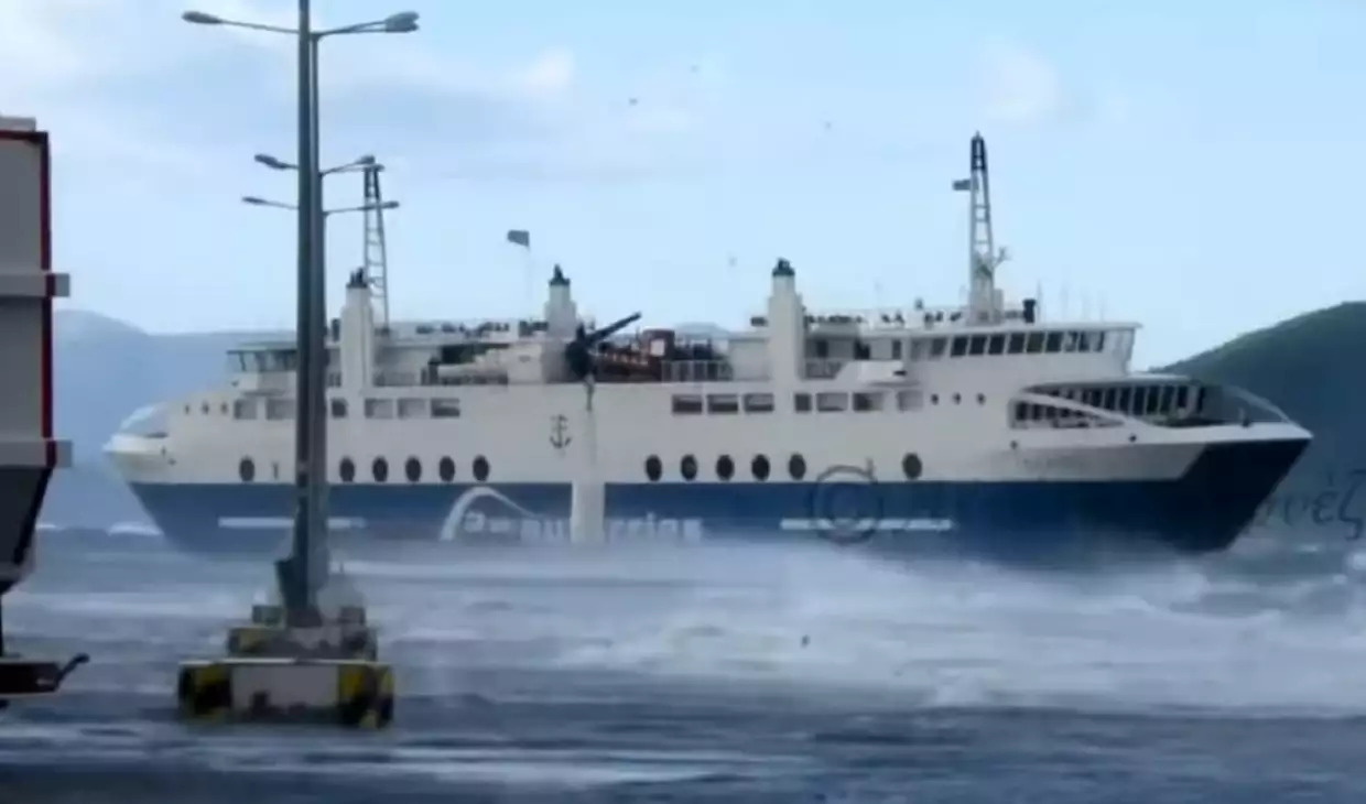 Βίντεο δείχνει τη «μάχη» με τα κύματα που έδωσε το πλοίο «Αχαιός» – για πάνω από μια ώρα – προκειμένου να δέσει στο λιμάνι της Αίγινας.