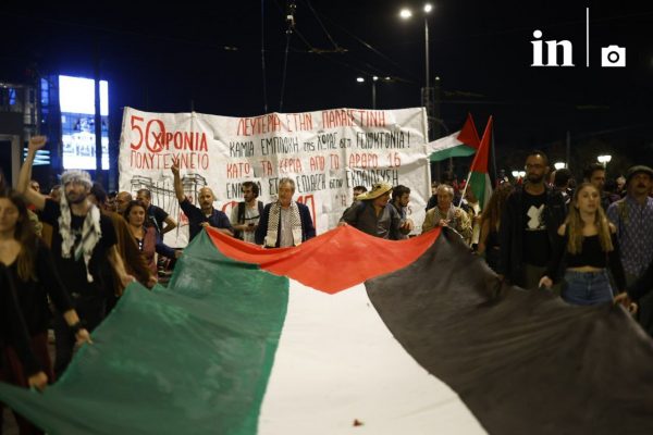 Σε όλες τις πορείες μνήμης για την εξέγερση του Πολυτεχνείου με πιο εμφανείς αυτές στην Θεσσαλονίκη, την Πάτρα και τα Τρίκαλα, τα συνθήματα και οι σημαίες της Παλαιστίνης είχαν την τιμητική τους.