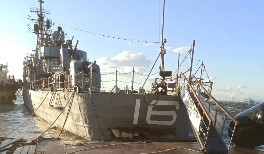 Η θαλασσοταραχή «τραυμάτισε» το πλοίο του Πολεμικού Ναυτικού που προσέκρουε στο κρηπίδωμα της Νέας Παραλίας Θεσσαλονίκης με αποτέλεσμα να υποστεί σοβαρή ζημιά στην πρύμνη του.