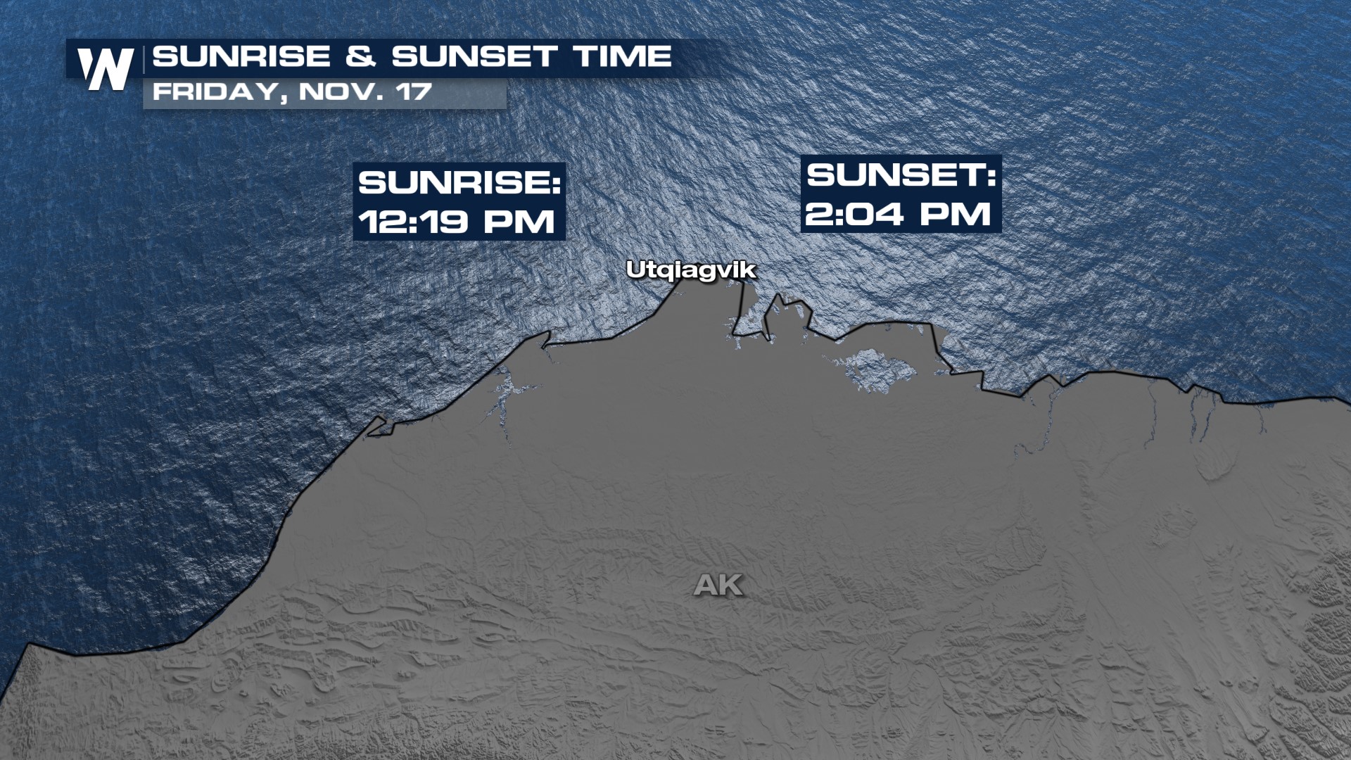Το Utqiagvik εισέρχεται στη λεγόμενη «πολική νύχτα». Αυτό σημαίνει ότι ο ήλιος θα δύσει και δεν θα ανατείλει ξανά τις επόμενες 65 ημέρες.