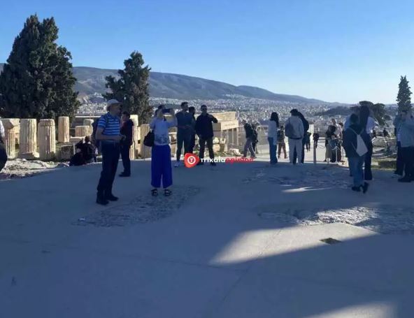 Παρέα με λίγα άτομα του φιλικού του περιβάλλοντος, ο κ. Κασσελάκης περιηγήθηκε στον αρχαιολογικό χώρο και θαύμασε τον Παρθενώνα, κοντά στον οποίο στάθηκε για ώρα.
