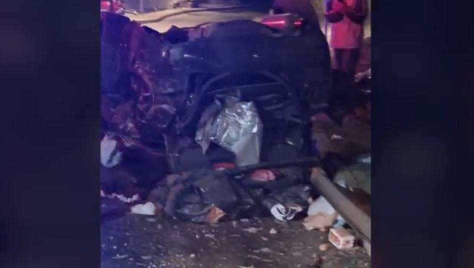 Η σύγκρουση ήταν τόσο σφοδρή που το όχημα μετατράπηκε σε άμορφη μάζα, από την οποία απεγκλωβίστηκαν δύο άτομα.